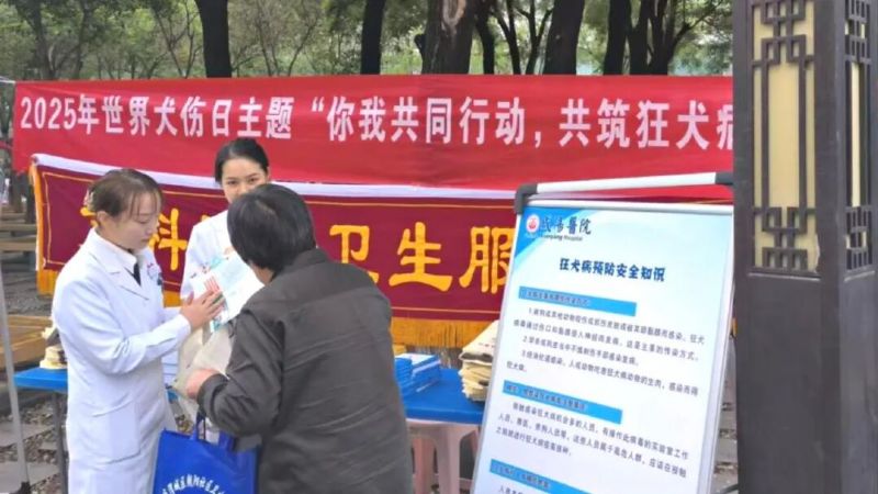 活動現(xiàn)場,醒目的宣傳展板吸引了眾多群眾駐足觀看。醫(yī)護(hù)人員發(fā)放宣傳資料、面對面答疑解惑等方式,用通俗易懂的語言向群眾普及狂犬病的嚴(yán)重危害、被咬后的傷口評估及預(yù)防知識。“被動物咬傷后第一時間要用肥皂水和流動的清水沖洗傷口15分鐘,然后立即去醫(yī)院處理傷口并注射狂犬疫苗,必要時注射狂犬病免疫球蛋白”,一位現(xiàn)場醫(yī)護(hù)人員介紹。