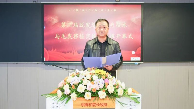 在11月3日的開幕式上,延安大學咸陽醫(yī)院外科病院姚春和副院長在致辭中充分肯定了培訓班的重要意義。他強調(diào),本次培訓是推動毛發(fā)診療技術規(guī)范化、標準化發(fā)展的重要舉措,體現(xiàn)了醫(yī)院對??迫瞬排囵B(yǎng)的高度重視與堅定支持,為整個培訓奠定了高標準、嚴要求的基調(diào)。