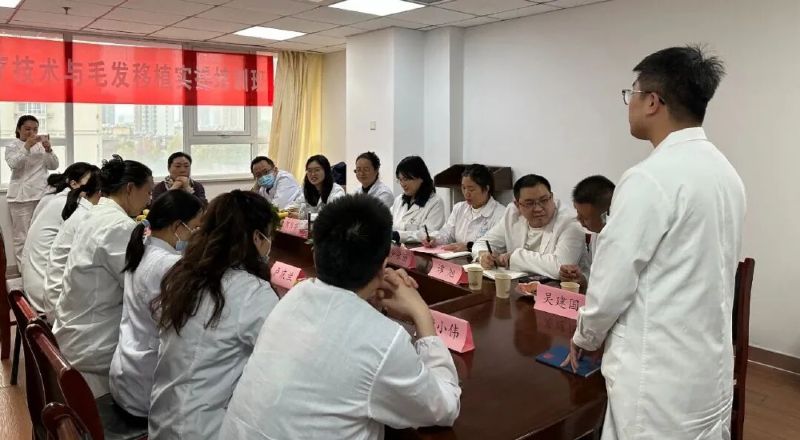 延安大學咸陽醫(yī)院皮膚科診療團隊進行了《頭皮美塑療法技術操作規(guī)范專家共識解讀》《休止期脫發(fā)的診斷與治療》《激光療法在脫發(fā)中的應用》《中醫(yī)外治技術在毛發(fā)疾病中的應用》《毛發(fā)專診護理團隊的建設與管理》《毛發(fā)移植術操作要點及術后并發(fā)癥處理》等課程的分享,為毛發(fā)專診建設提供了全方位的技術指導。