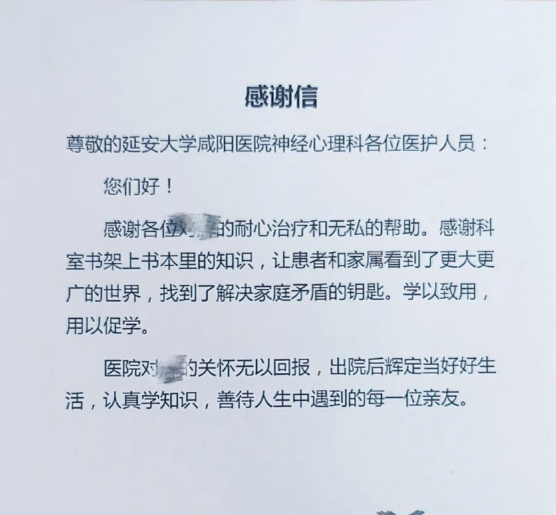 隨著心墻漸次消融,不僅他的心理壓力得到有效紓解,僵持已久的家庭矛盾也悄然化解??祻?fù)出院之際,他不僅送來(lái)情真意切的感謝信,還特意捐贈(zèng)了幾本珍藏的好書(shū),希望這份浸潤(rùn)著墨香的溫暖,能在更多患者心中傳遞下去。