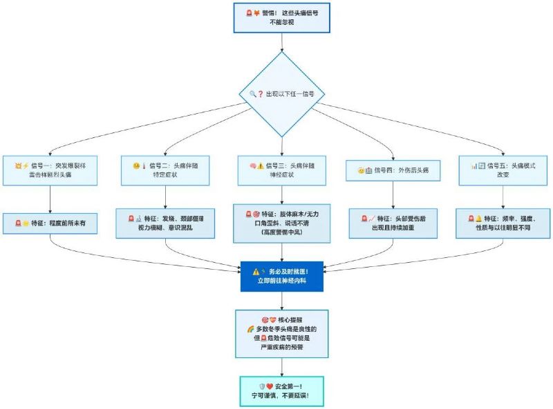 多數(shù)冬季頭痛是良性的,但如果出現(xiàn)以下“危險信號”,可能是嚴重疾病的預警,務必及時到??凭驮\: