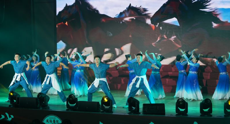 舞蹈《駿馬馳騁杏林路》以鏗鏘的舞步、昂揚(yáng)的編排象征醫(yī)院在新的一年奮楫揚(yáng)帆、馳騁向前
