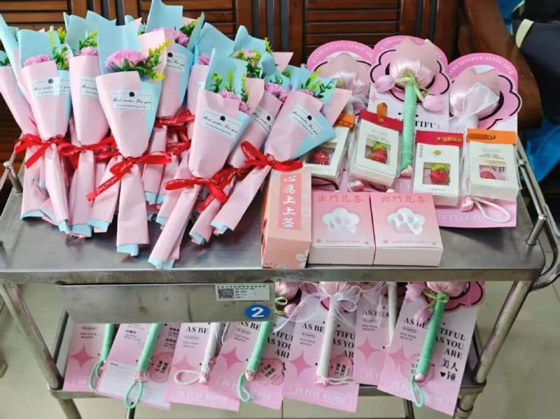 節(jié)日前夕,消化內科一病區(qū)的醫(yī)護人員便開始了緊鑼密鼓的籌備。他們利用休息時間,親手書寫了一張張飽含深情的祝???,精心準備了手工肥皂花束和寓意吉祥的小禮物,還特別制作了“心愿上上簽”抽簽筒。每一個細節(jié),都凝聚著對患者的用心與關愛——正如醫(yī)院始終秉承的“大醫(yī)精誠,仁愛中國”核心文化,此刻正化作筆尖的溫度、指尖的心意。