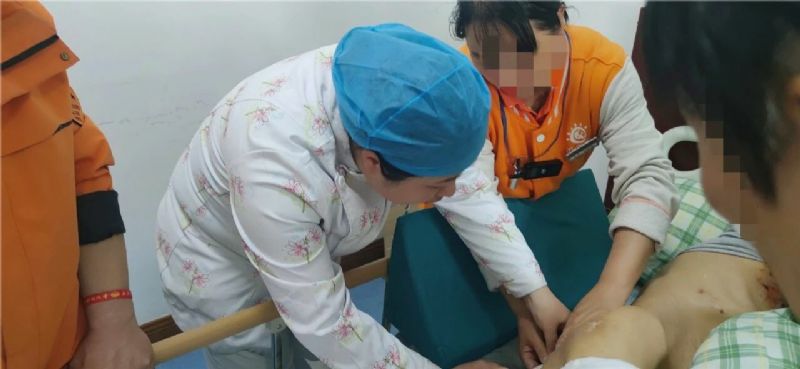 皮膚傷口護理組和老年護理組深入房間,為長期臥床、慢性病老人評估傷口、指導換藥。93歲的王奶奶因長期臥床,骶尾部出現(xiàn)壓瘡,護士輕輕揭開敷料,手把手教護理員清創(chuàng)、上藥,每一個動作都又輕又穩(wěn)。“一點都不疼,你們真好?!蓖跄棠萄劭粑⒓t,緊緊握住了護士的手。那雙布滿皺紋的手和年輕護士的手緊緊交握,無聲卻動人。